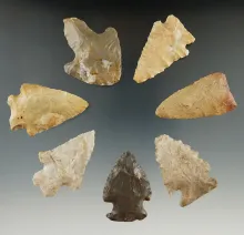Group of 7 Assorted Arrowheads found in Indiana and Kentucky, largest is 1 15/16". | KENTUCKY | 30.00 | |