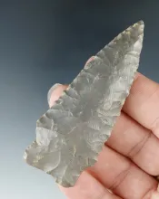 Excellent serrations on this 2 1/4" Carter Cave Flint cornernotch found in Kentucky. KENTUCKY 100.00