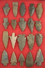 27 assorted Missouri points, largest is 3 9/16". |
