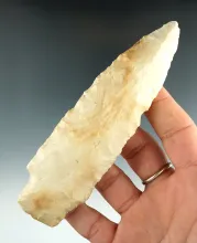 Unique Hopewell 5 1/8" orange and tan flint found in St. Louis Co., Missouri. Ex. Irv Dougherty. |