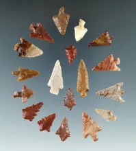 Group of 18 assorted Columbia River arrowheads found in Washington, largest is 7/8". WASHINGTON 130.00