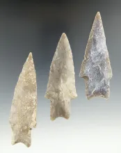 Set of three Pedernales points found in Texas, largest is 3 1/2". |