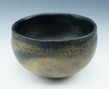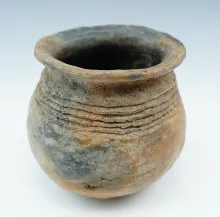 Beautiful exterior design on this 5 1/2" tall x 5 3/4" wide Prehistoric pottery vessel found in New |