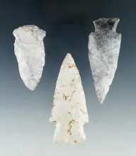 Set of three assorted arrowheads found in Missouri, largest is 3 1/8". |