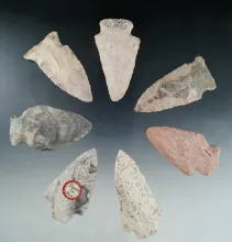 Set of 10 assorted Missouri arrowheads and knives, largest is 2 1/2". | MISSOURI | 40.00 | |