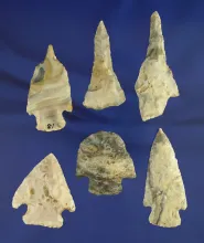 Set of six assorted Missouri arrowheads, largest is 2 1/2". | MISSOURI | ||