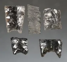 Group of five obsidian Paleo bases found in Oregon, largest is 1 5/16". |