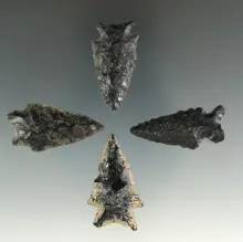 Set of four assorted Obsidian arrowheads found in Oregon, largest is 1 1/2". |