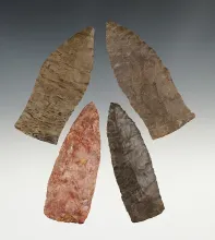 Set of 4 finely made Triangle points. Found in the Kentucky/Tennessee area. The largest is 2 3/16". |