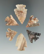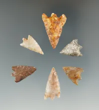 Group of six nicely styled Columbia River arrowheads found near Quilomene Bar, Vantage, WA. WASHINGTON 70.00
