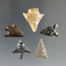 Set of five Columbia River arrowheads found in Kittitas Co., Washington. Largest is 13/16". |