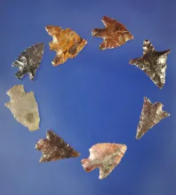 set of eight assorted Columbia River arrowheads. Largest is 3/4". Columbia River. |