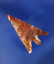 Large 2" Rabbit Island with nice edge serrations that is beautifully flaked from dark red Jasper. |