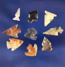 Group of nine assorted small arrowheads and Gempoints found near the Columbia River. |