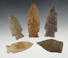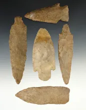 Excellent group of five assorted points found in Tennessee. Largest is 3 18". TENNESSEE 80.00