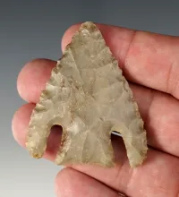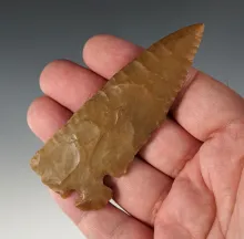 1 3/8" Bonham made from Edwards Chert. Found in Grayson Co., Texas.Ex. Davis. Perino COA. |