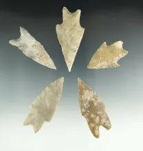 Ex. Museum! Set of five Pedernales Points in nice condition found in Texas. Largest is 2 11/16". |