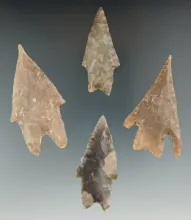 Set of four Pedernales Points found in Texas, largest is 3". |