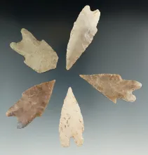 Set of five Pedernales Points found in Texas, largest is 2 11/16". |