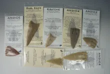 3 5/8" Kinney Knife made from gray flint, found in Texas. Ex. Charles Shewey, David Bogle. 2 COA's. |