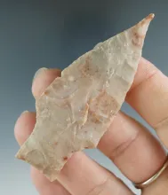 1 5/16" Duran made from light tan chert, found in Southwest Texas. Comes with a Rogers COA. TEXAS 95.00