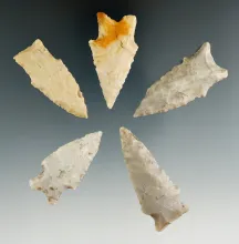 Set of five stemmed points found in Texas, largest is 1 15/16". | TEXAS | 45.00 | |