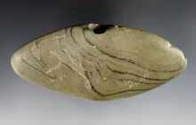 4 1/8" undrilled Pick Bannerstone. Mercer Co., Ohio. Made from colorful Banded Slate. |