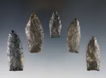 Set of 5 Paleo Lanceolates found in Summit and Stark Co., Ohio. Bennett COA. |
