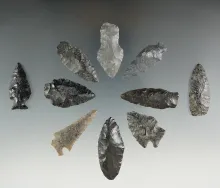 Set of 10 assorted Obsidian Arrowheads nice condition found in Oregon. Largest is 1 9/16". |
