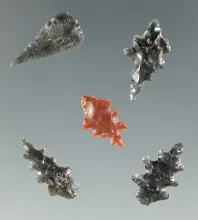 Set of 5 Calapooya Fern Leaf Points found at Fern Ridge, near Eugene, Oregon. Longest is 1/2". |