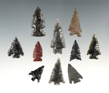 Set of 10 nice points found in Lake Co., Oregon. The largest is 1 9/16". |