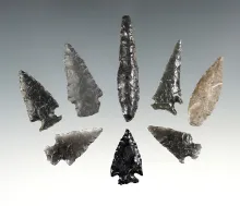 Set of 8 nice points found in Lake Co., Oregon. The largest is 2 1/8". |