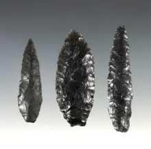 Set of 3 Nice Obsidian Blades found in Lake Co., Oregon. The largest is 2 11/16". |