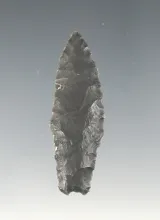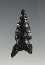 2 5/8" Eastgate style Obsidian point with nice serrations and beautiful flaking. Lake Co., Oregon. |