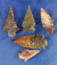 Set of five Columbia River Arrowheads, largest is 1 1/4". |