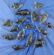 Group of 15 assorted Obsidian Arrowheads found in Oregon, largest is 1 1/8". |