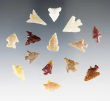 Set of 14 Assorted Columbia River Arrowheads, largest is 1 1/16". |