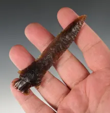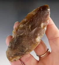 Exceptional flaking on this large 4 7/16" Buchannon Eared with a restored tip - Oregon. | OREGON | 2,600.00 | |