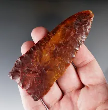 Incredible edge serrations on this well shaped 2 3/8" Elko found in Lake County Oregon. |