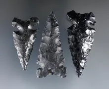 Set of three nicely styled Northern Side Notched Points made from Obsidian found near Burns, OR. |
