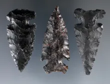Set of three well styled Northern Side Notched Points made from Obsidian found near Burns, Oregon. |