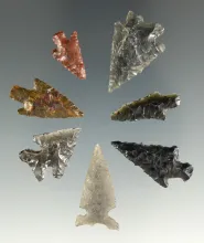 Nice assortment of Obsidian arrowheads found in Oregon, largest is 1 1/8". |
