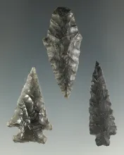 Three nice Obsidian arrowheads found in Oregon, largest is 1 1/2". |