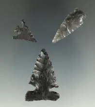 Set of three Obsidian points in excellent condition found near Burns, Oregon. Largest is 1 5/16". OREGON 40.00