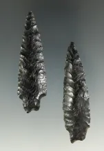 Nice pair of Obsidian points with excellent flaking found in Oregon, largest is 2 5/16". OREGON 100.00
