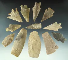 Set of seven Montell points found in Texas, largest is 2 3/4". |
