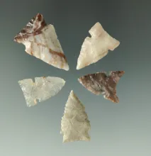 Set of five assorted arrowheads found in Colorado, Montana and Texas. Largest is 1 3/16". |