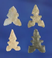 Set of four assorted Texas/New Mexico arrowheads, largest is 2". |