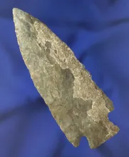 2 3/8" well styled Bulverde point found in Texas with nice minerals on surface and a needle tip. |