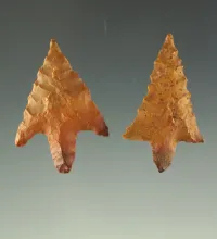 Ex. Museum! Pair of Caracara sidenotch points found in Texas, Ex. Charles Shewey collection. |